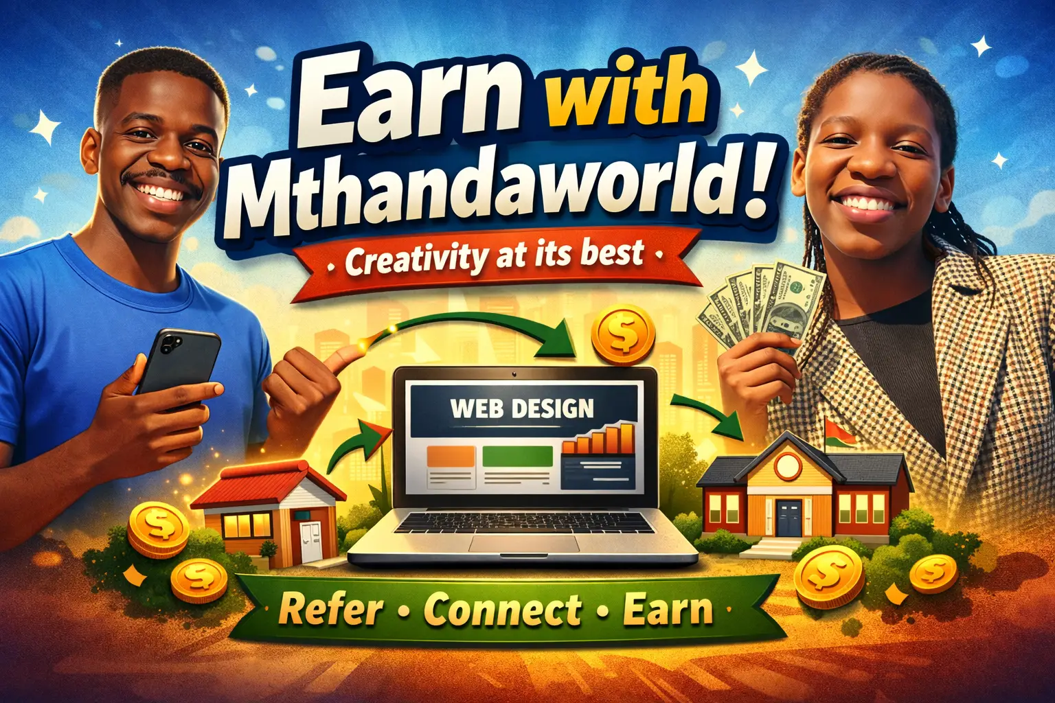 If you know someone who needs a website, you can earn with Mthandaworld just by connecting them to us.